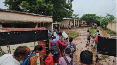 तेज बारिश ने सरकारी स्कूल को बनाया तालाब, बच्चों को गोद में उठाकर बाहर ले गए अभिभावक