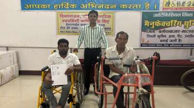 दिव्यांगजनों क़ो मिला ट्राईसिकल व वाकिंग स्टिक