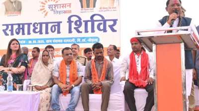 बीजापुर जिले के संकनपल्ली पंचायत में आम के पेड़ के नीचे लगा समाधान शिविर का चौपाल